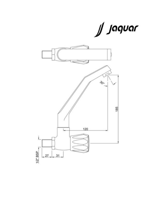 Jaquar Sink Cock with Raised ‘J’ Shaped Swinging Spout (Wall Mounted Model)