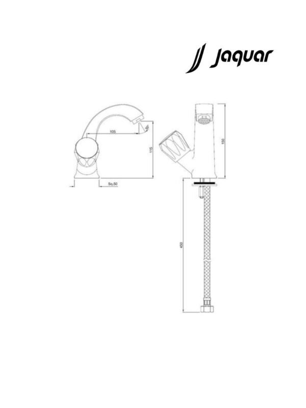 Jaquar Swan Neck, Left Hand Operating Knob with 450mm Long Braided Hoses with product code : CON-CHR-123BKN is from Continental Series